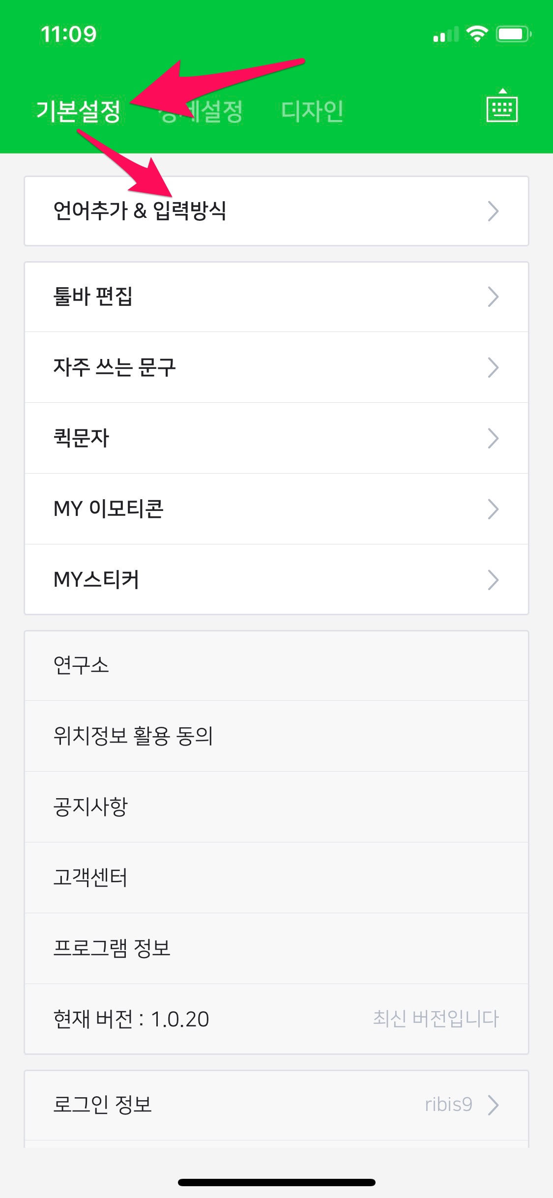 언어추가 & 입력방식을 선택하면 한국어, 영어, 일본어 선택할 수 있고 입력 방식은 쿼티와 12키를 선택하면 됩니다.