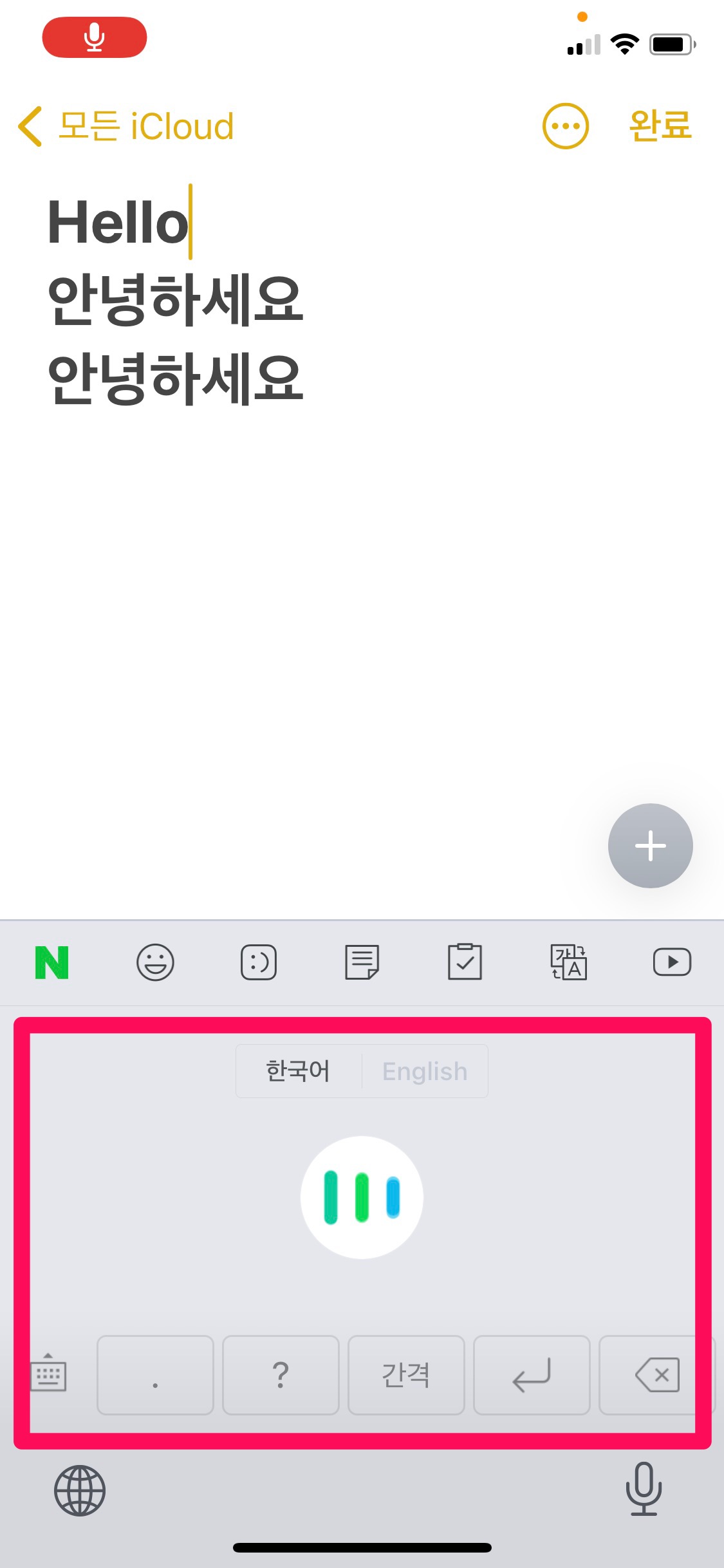 마이크를 선택하고 접근 허용을 한 후에 목소리를 인식하여 자동으로 문구가 삽입됩니다.