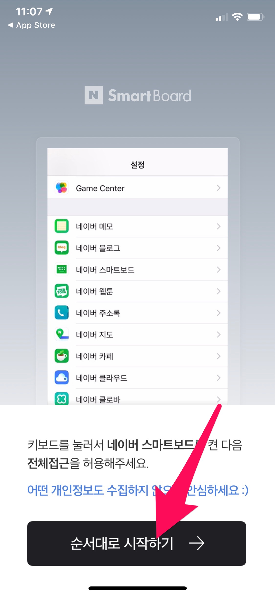 네이버 스마트보드 키보드에 대한 전체 접근을 허용합니다.