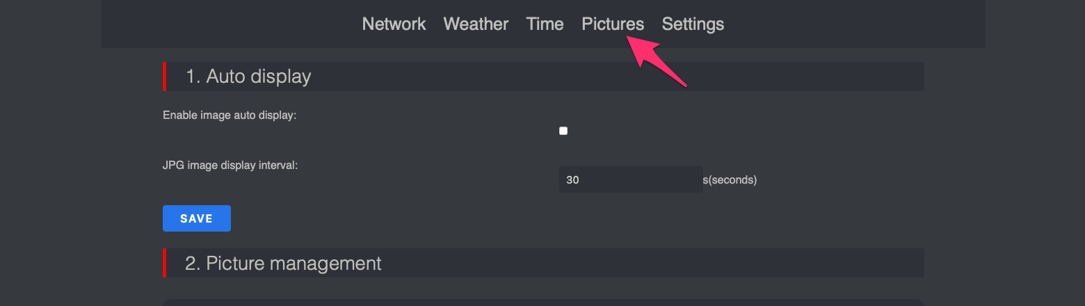 Pictures 메뉴에서 디스플레이를 사진앨범으로 변경할 수 있습니다.