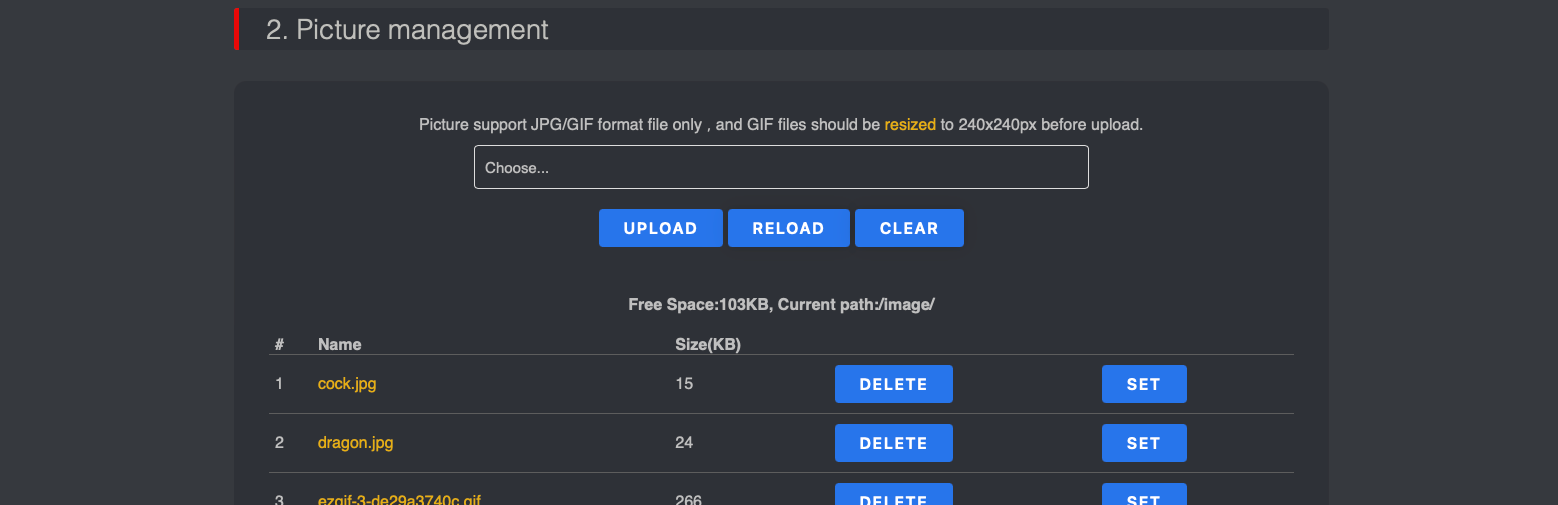 또한 공장 초기화(Factory Reset), 재부팅(Reboot), 팜웨어 업데이트(Firmware update)가 있습니다.