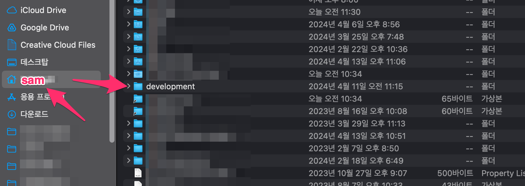 그리고 development라는 폴더를 만듭니다.