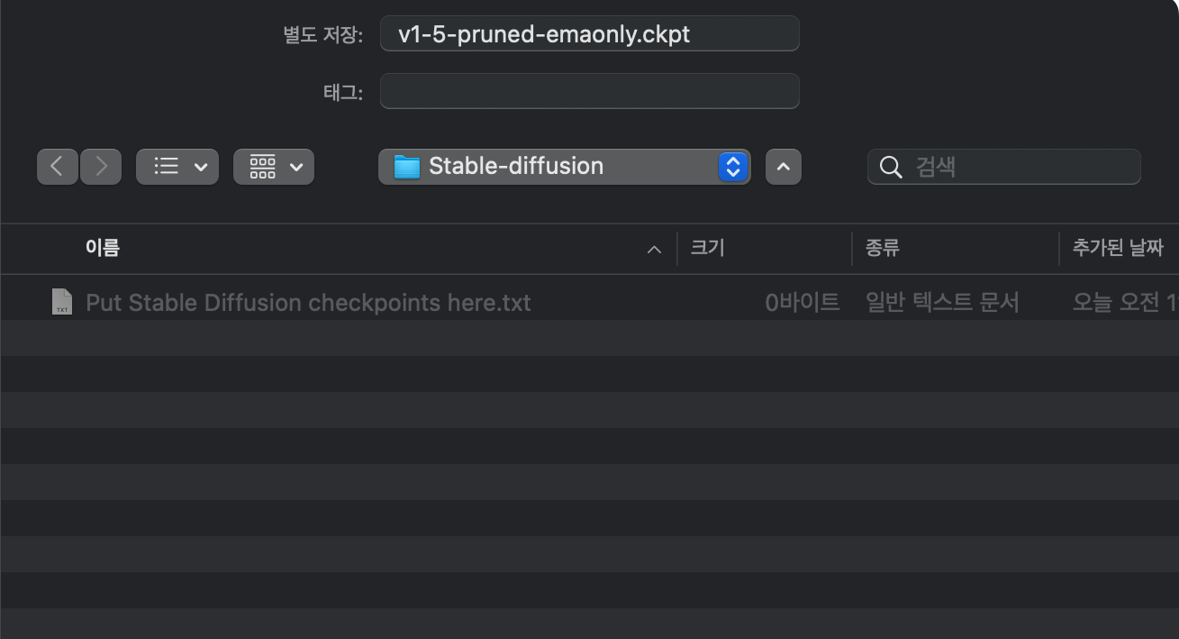 폴더위치 : stable-difuusion-webui 폴더 > models 폴더 > Stable-diffusion 폴더