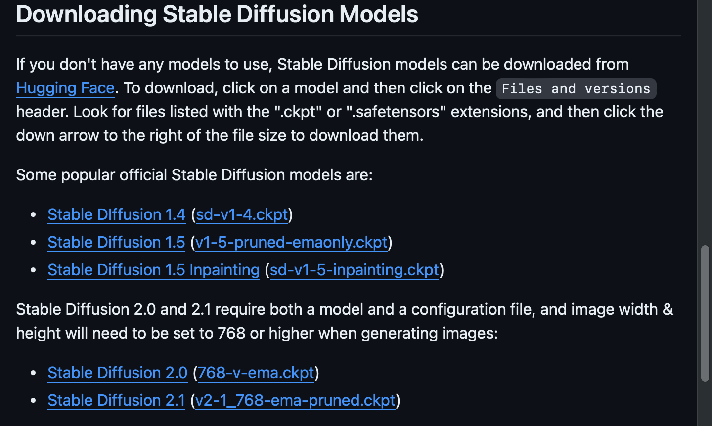 이제 stable difussion 모델을 다운로드하여야 하는데요.